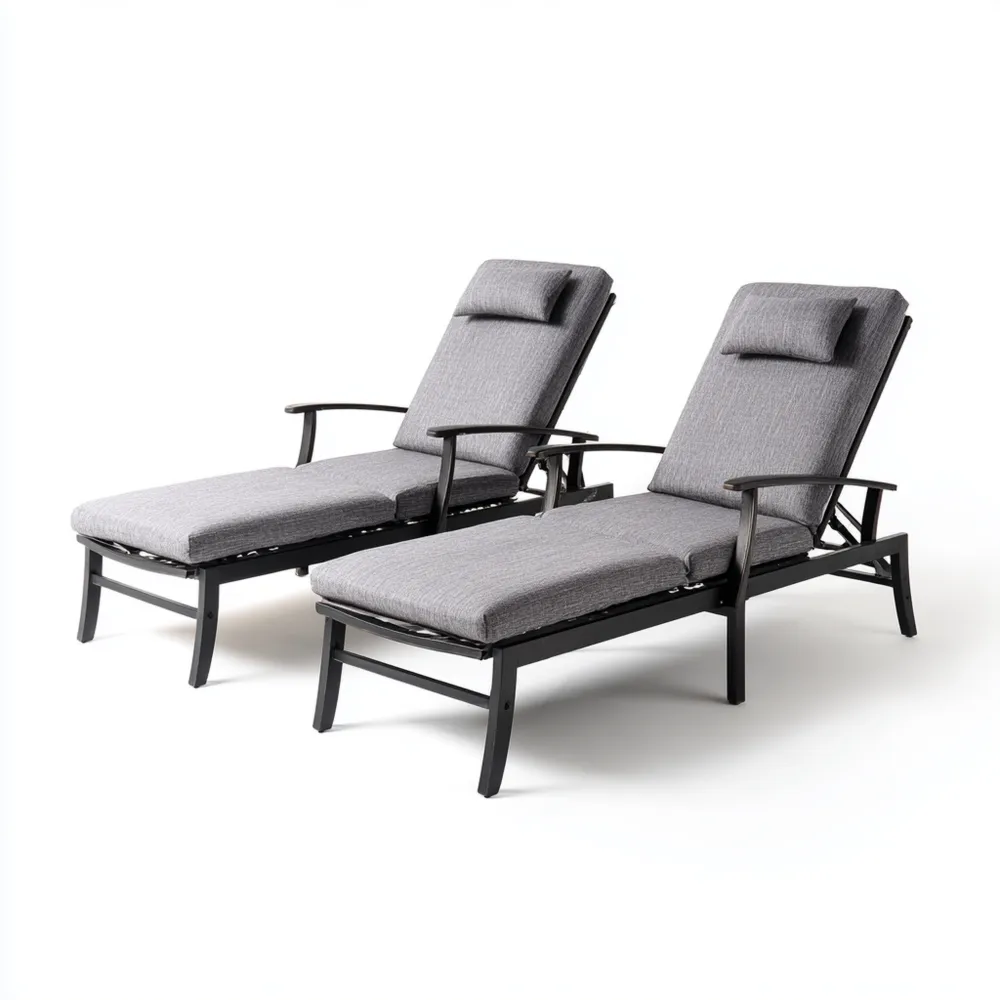 Gartenliege Set – Aluminiumrahmen Stoffbezug Grau – Verstellbar 198x65x32 cm