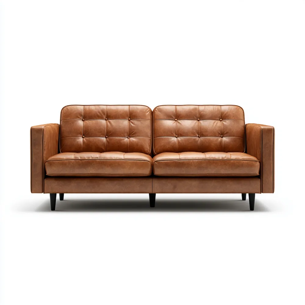 Material und VerarbeitungDas Sofa ist mit einem hochwertigen braunen Lederbezug versehen, der Langlebigkeit und eine edle Optik gewährleistet. Die stabilen Holzfüße runden das Design ab.