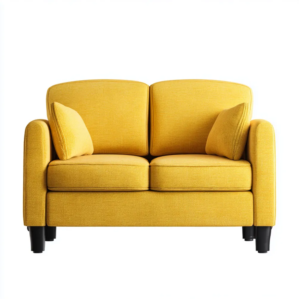 Material und VerarbeitungDas Sofa ist mit einem weichen, langlebigen Stoff in einem leuchtenden Gelb bezogen. Der robuste Holzrahmen sorgt für Stabilität und Langlebigkeit.